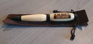 This pen is custom made by Lone Star Wood Pens using wood that was obtained from the Bois Jacques in Bastogne, Belgium. These pens are made exclusively through a partnership with Doc Roe Publishing. The wood is specifically from in and around Easy Companies still existing foxholes. We are proud to offer these pens to honor the men of the 506 Parachute Infantry Regiment.